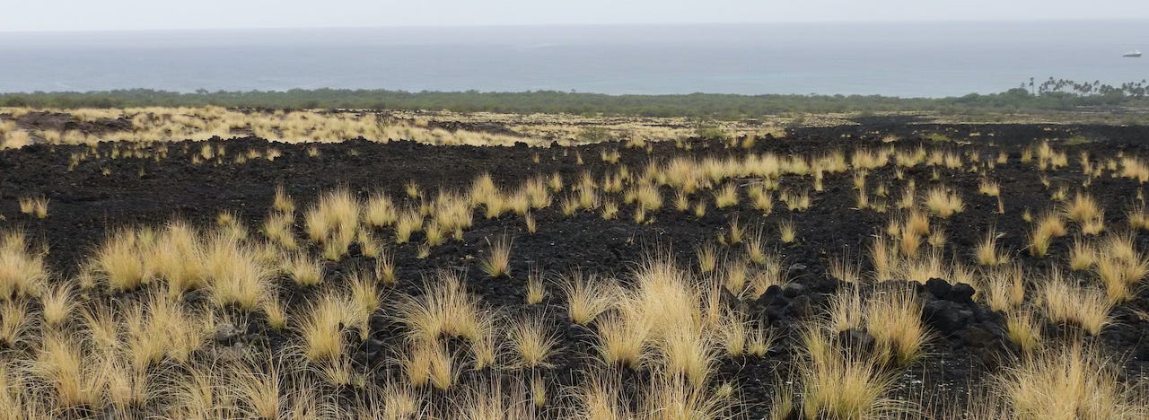 As we drove across the island to Hawaii Volcanoes National Park, my first impression was desolation. Black fields of lava from eruptions within the past few decades stretched to the horizon. A closer look, however, revealed bits of vegetation already starting to grow on and reclaim what one might assume is sterile rock.